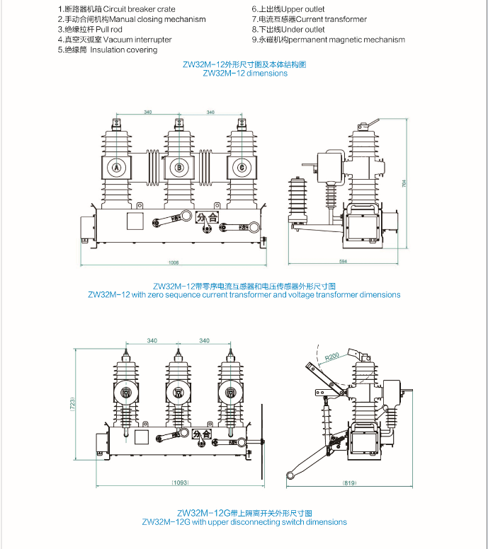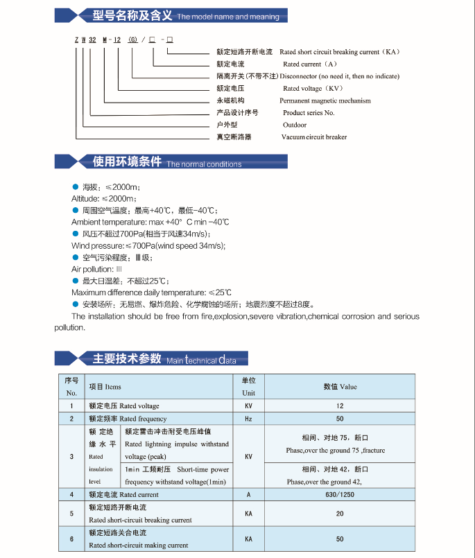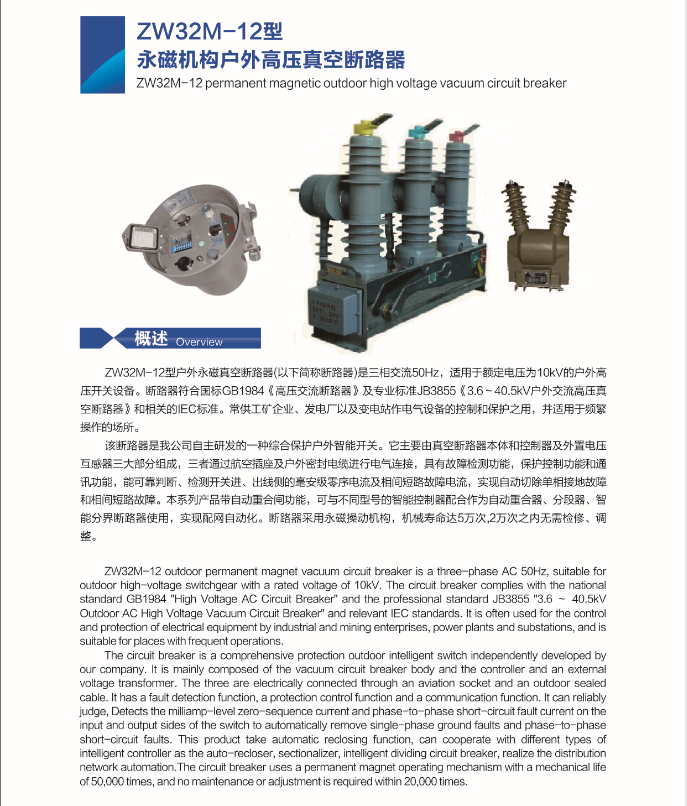 ZW32M-12 permanent magnetic outdoor high voltage vacuum circuit breker