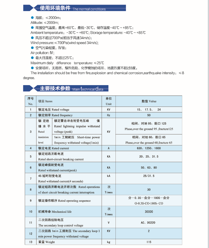 VHE(ZN63A)-24 indoor high voltage vacuum circuit breker(embedded pole structure)