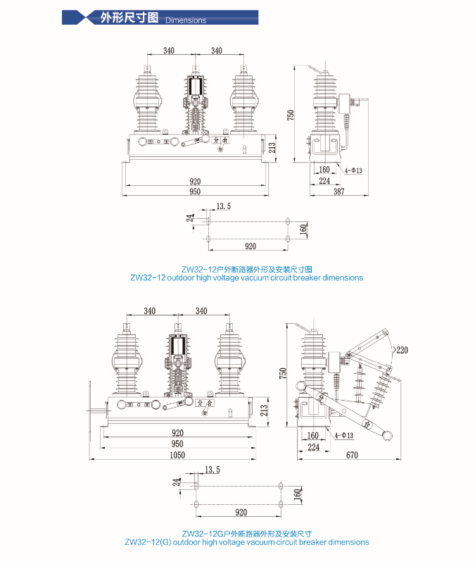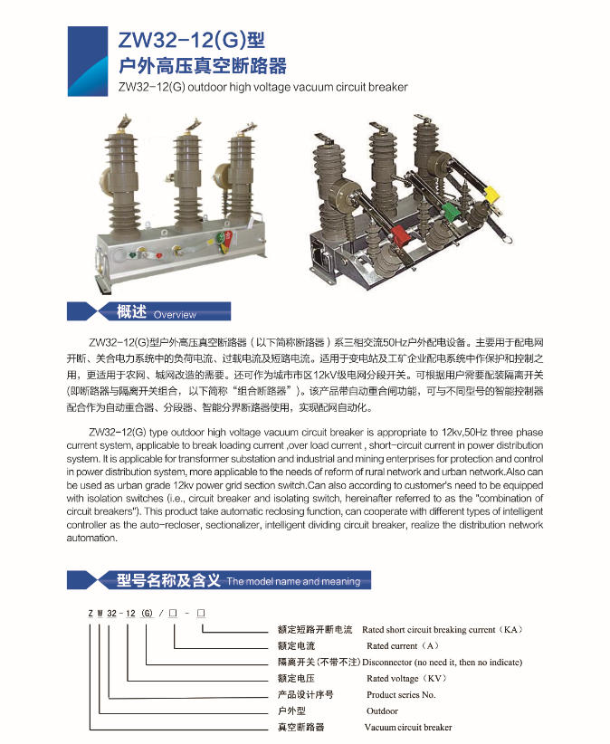 ZW32-12(G) outdoor high voltage vacuum circuit breker