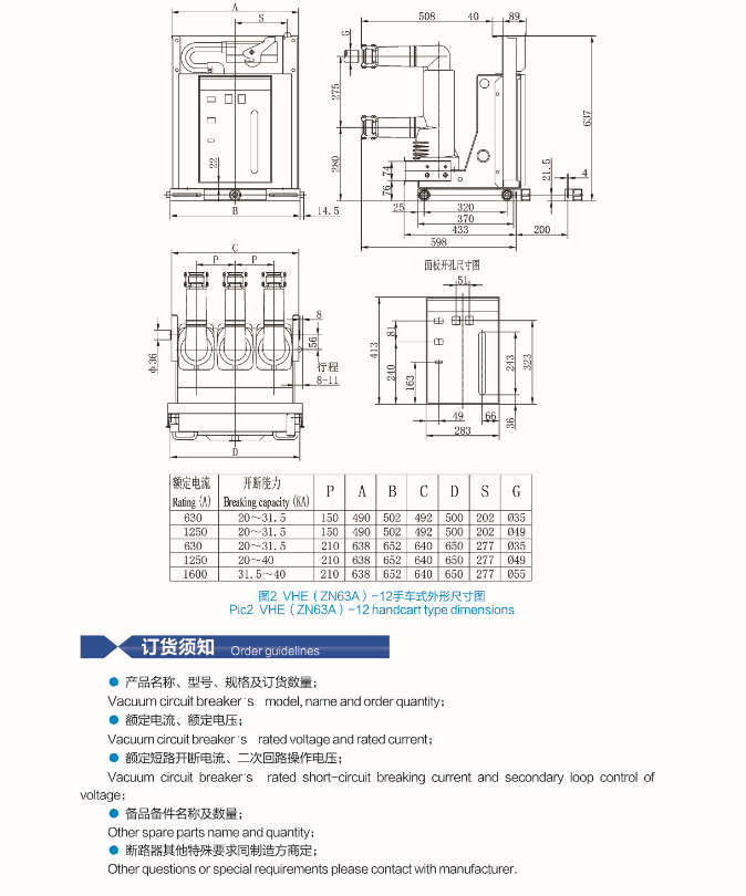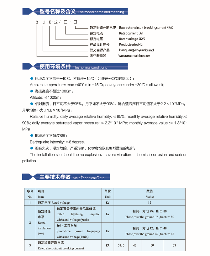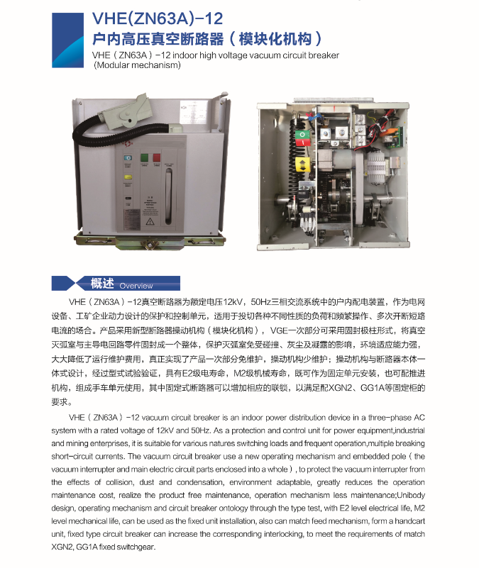 VHE(ZN63A)-12 indoor high voltage vacuum circuit breker(Modular mechanism)