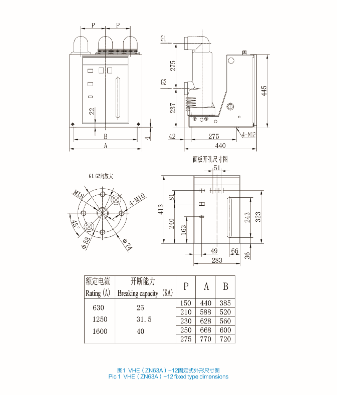 VHE(ZN63A)-12 indoor high voltage vacuum circuit breaker(embedded pole structure)