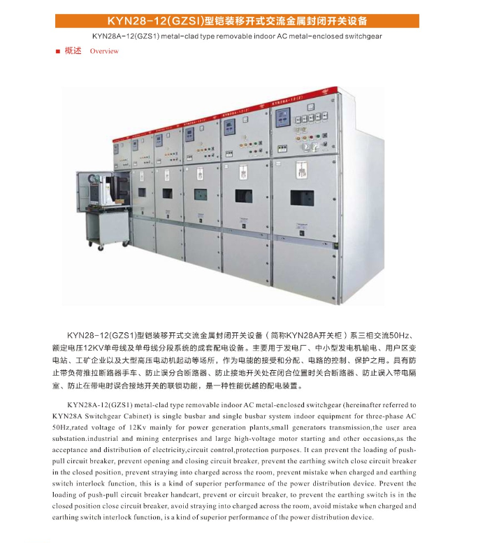 KYN28-12(GZS) metal-clad type removable indoor AC metal-enclosed switchgear
