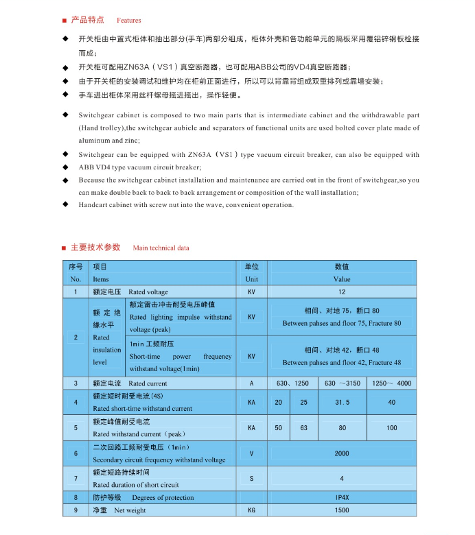 KYN61-40.5(Z) metal-clad type removable indoor AC metal-enclosed switchgear